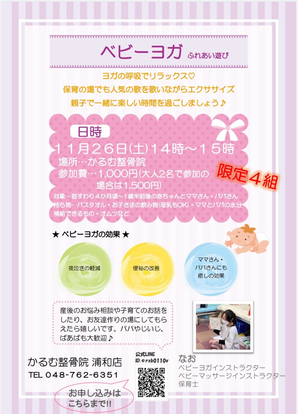 11/26(土) ベビーヨガ教室やります! 投稿日 2022/11/15 著者 calmo_staff カテゴリー お知らせ カテゴリー ブログ 11/26(土) 14:00より浦和店にて ベビーヨガ教室を行います! 【4組様限定】にて行いますのでご興味のある方は お電話はもしくはリンクの公式LINEからお問合せください! https://lin.ee/wjnX4Ow